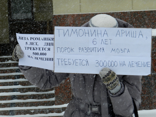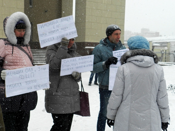 Участники акции вышли с плакатами - призывами о помощи больным детям.