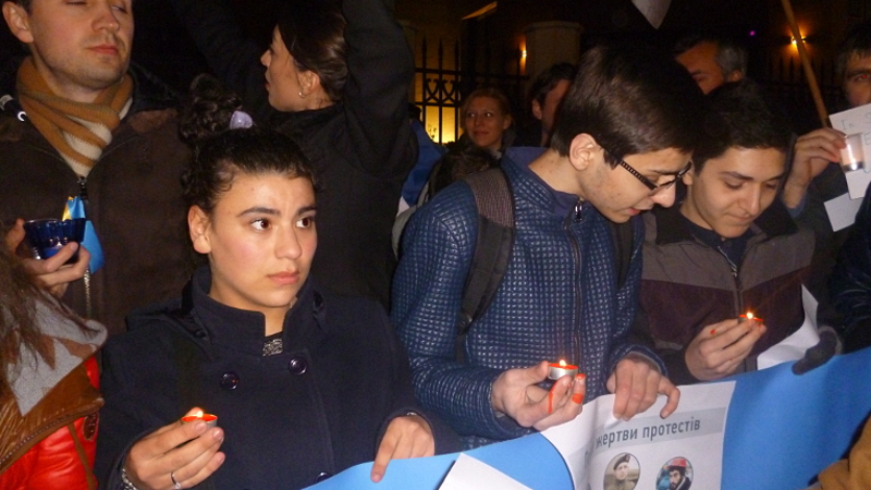 Акция в поддержку Евромайдана. Тбилиси, 24 января 2014 года. Фоторепортаж корреспондента "Кавказского узла" Анны Коноплевой.