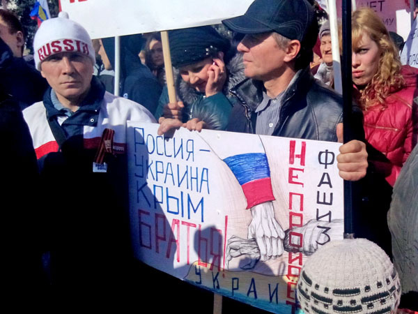 Митинг в поддержку жителей Украины. Астрахань, 9 марта 2014 г. Фоторепортаж корреспондента "Кавказского узла" Елены Гребенюк
