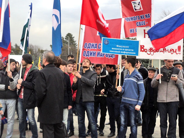 Митинг в поддержку присоединения Крыма. Нальчик, 18 марта 2014 г. Фоторепортаж корреспондента "Кавказского узла" Людмилы Маратовой