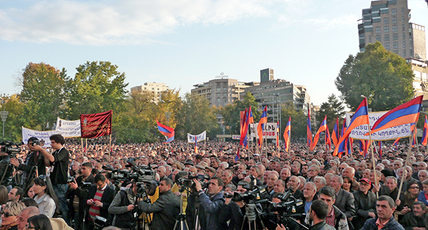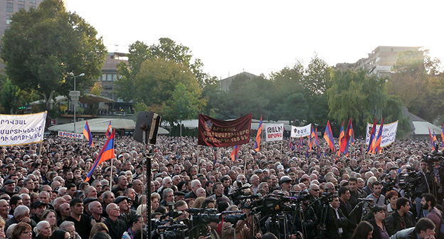 Невластные партии Армении провели 24 октября многотысячный митинг в Ереване с требованием отставки президента страны Сержа Саргсяна. Фоторепортаж корреспондента "Кавказского узла" Армине Мартиросян