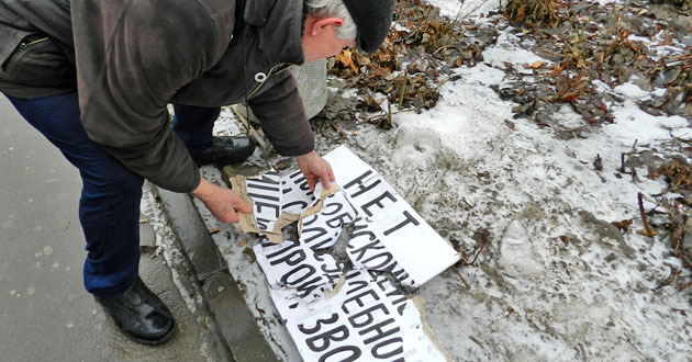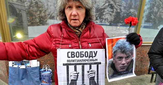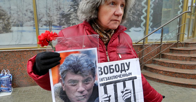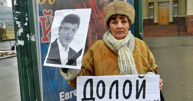 Два одиночных пикета в память о Борисе Немцове. Волгоград, 1 марта 2015 г. Фоторепортаж корреспондента "Кавказского узла" Татьяны Филимоновой