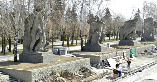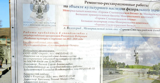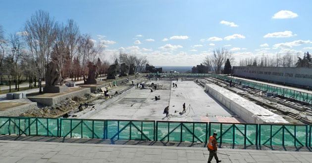 Ремонтно-реставрационные работы на мемориальном комплексе «Героям сталинградской битвы» на Мамаевом кургане. Волгоград, 24 марта 2015 г. Фоторепортаж корреспондента "Кавказского узла" Татьяны Филимоновой