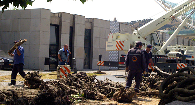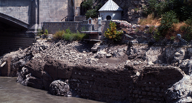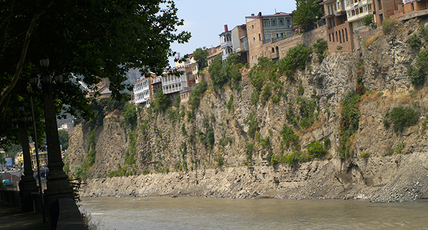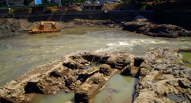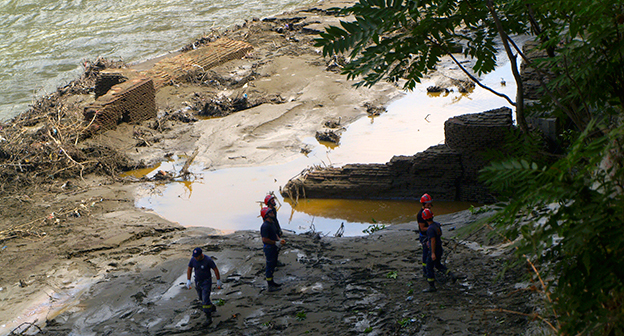 Осушение Куры во время поисковых работ. Тбилиси, 5 июля 2015. Фоторепортаж корреспондента "Кавказского узла" Беслана Кмузова.