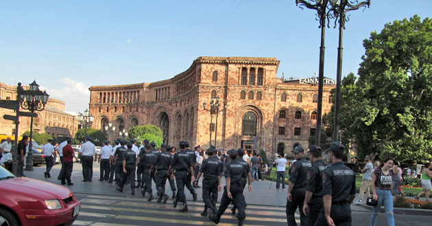 Сидячий пикет на площади Республики против подорожания электроэнергии. Ереван, 30 июля 2015 года. Фоторепортаж корреспондента "Кавказского узла" Армине Мартиросян