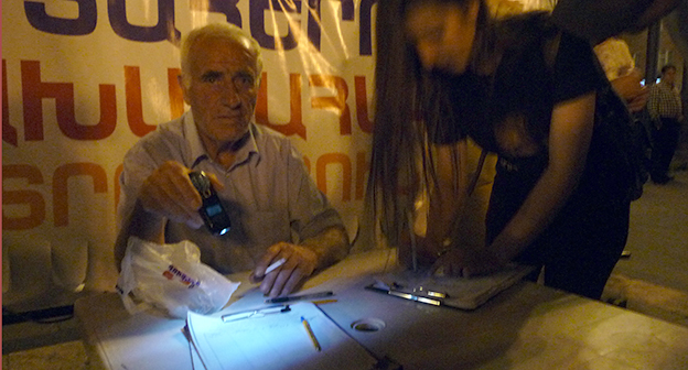 1 сентября сторонники инициативной группы "Нет грабежу!", борющиеся против подорожания электроэнергии, собрались в Парке Влюбленных. Фоторепортаж корреспондента "Кавказского узла" Армине Мартиросян