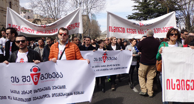 Акция-шествие против распространения записей личной жизни прошла в центре Тбилиси. 19 марта 2016 год. Фоторепортаж Инны Кукуджановой для "Кавказского узла".