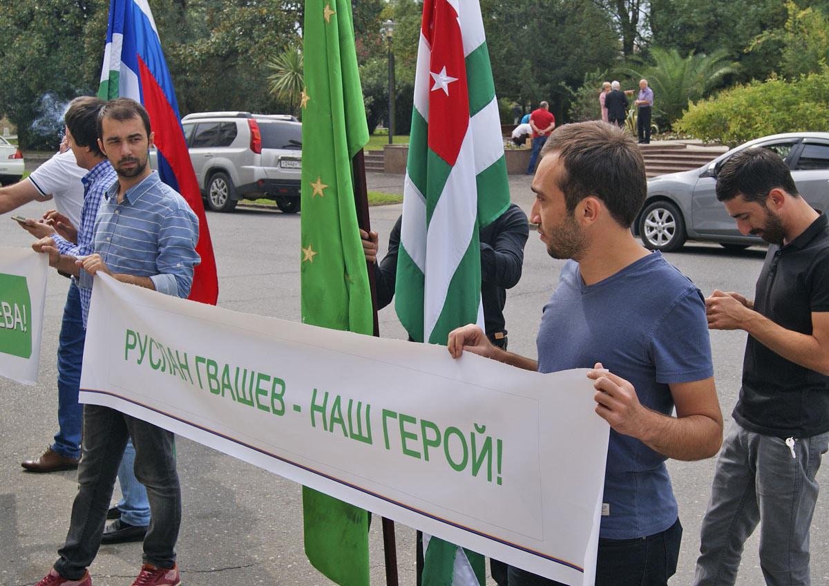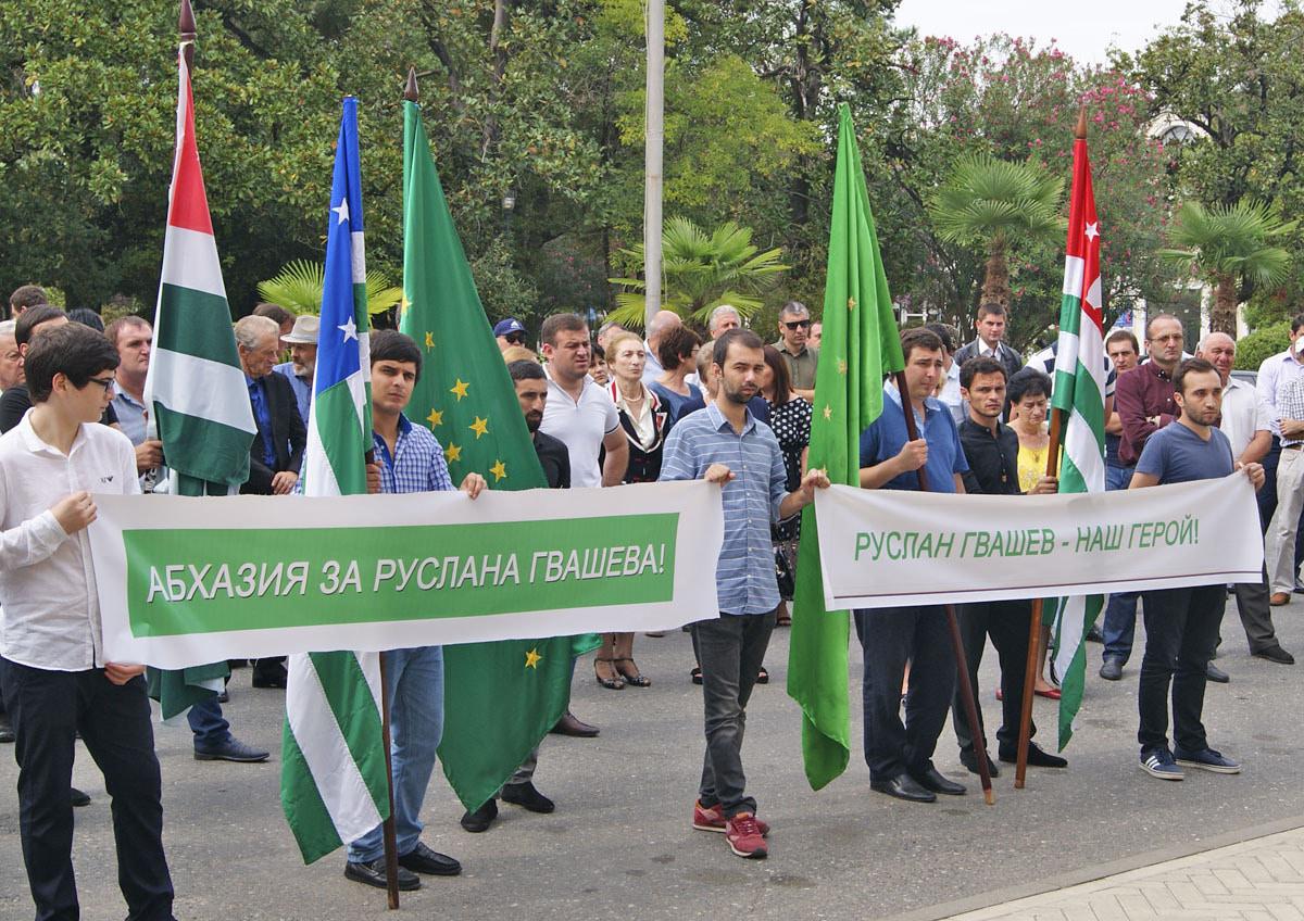 Участники митинга в Сухуме обратились к президентам России и Абхазии с просьбой сохранить жизнь Руслана Гвашева