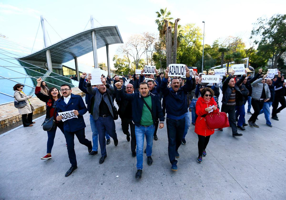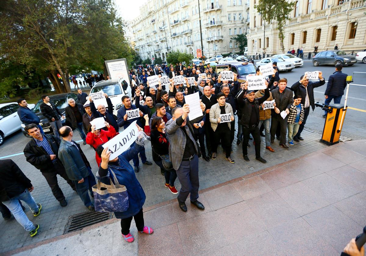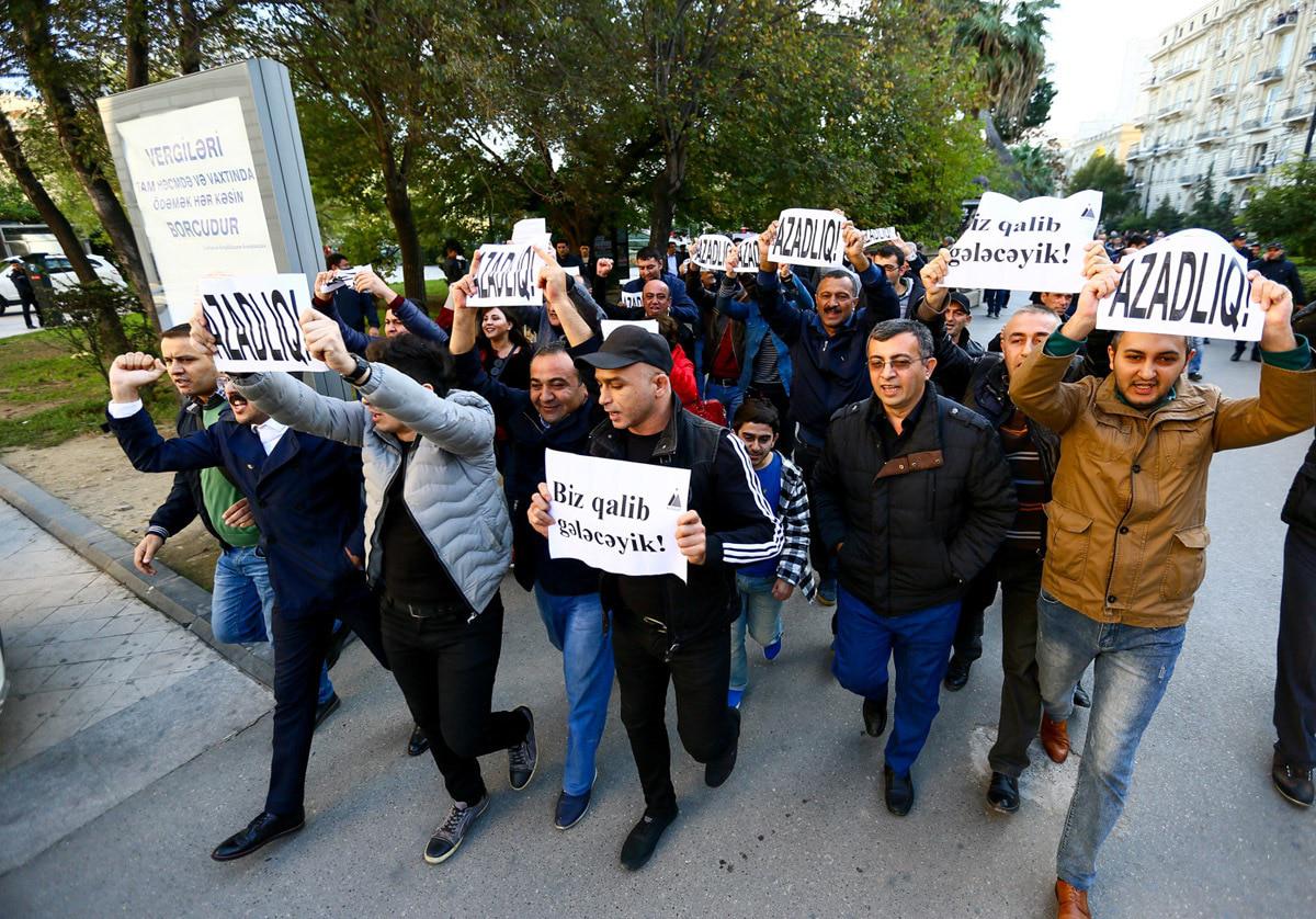 Активисты партии "Мусават" выразили пикетом протест против отказа бакинской мэрии согласовать шествие. Баку, 3 ноября 2017 г.