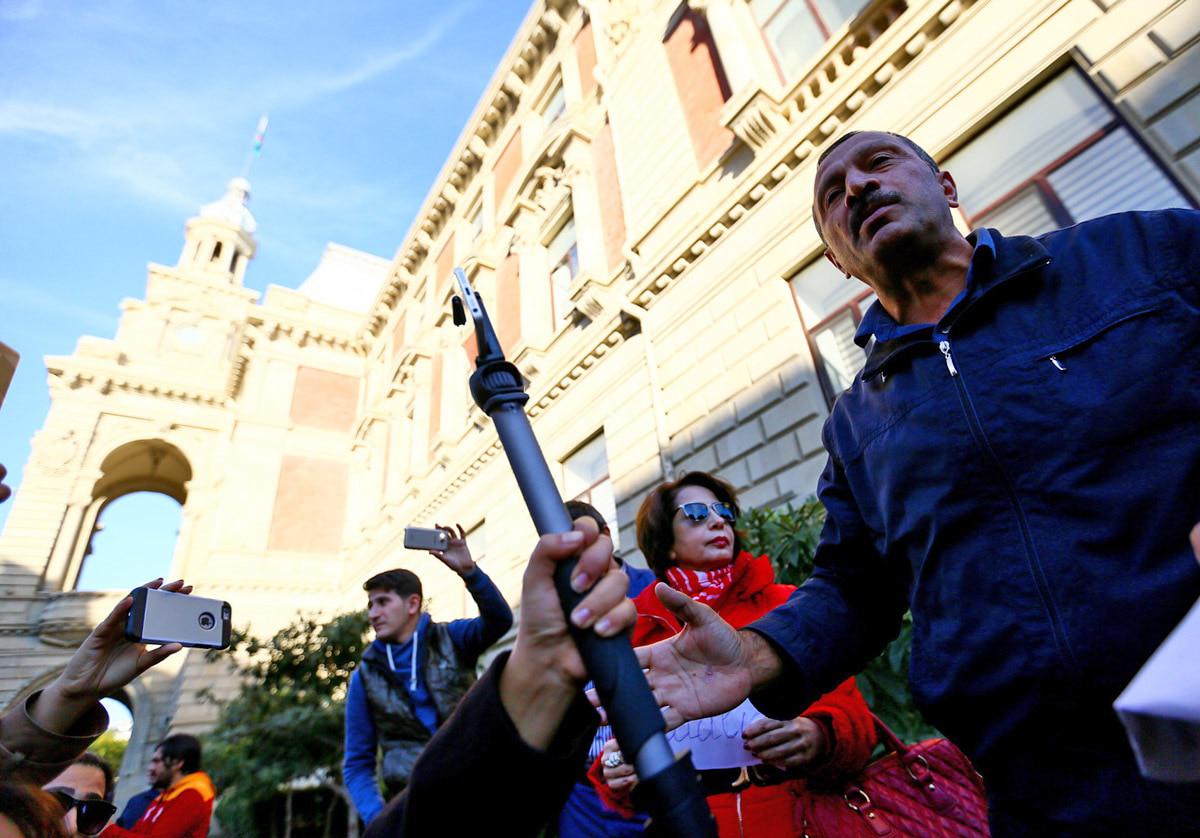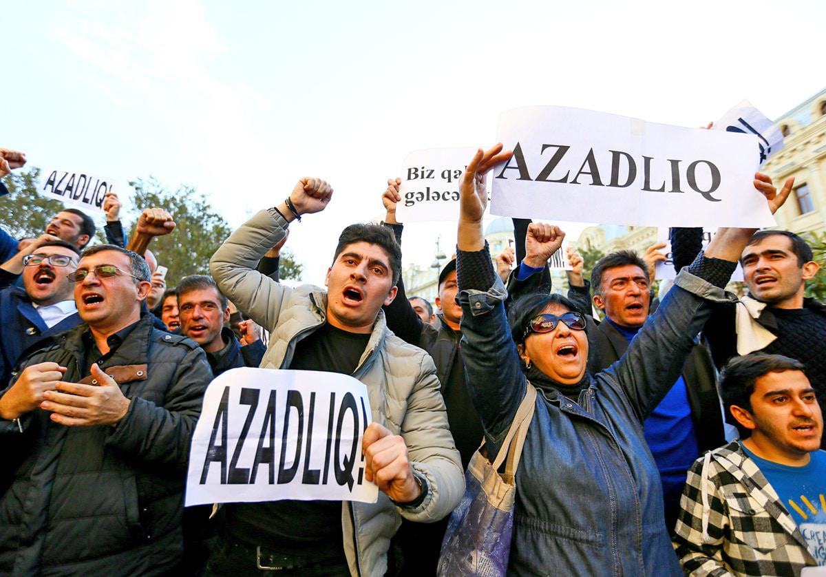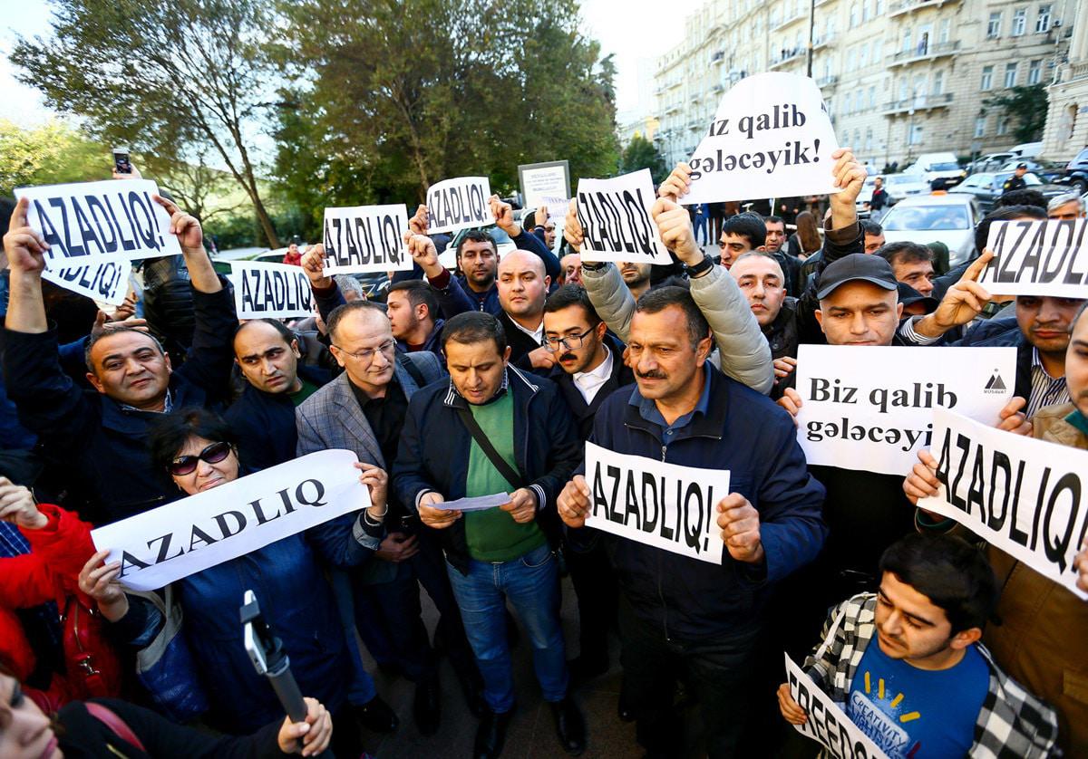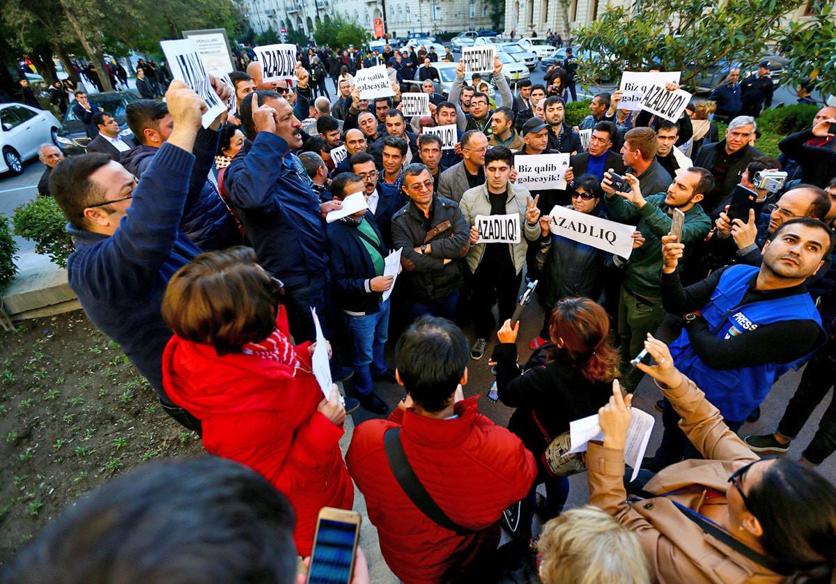 Активисты партии "Мусават" выразили пикетом протест против отказа бакинской мэрии согласовать шествие. Баку, 3 ноября 2017 г.