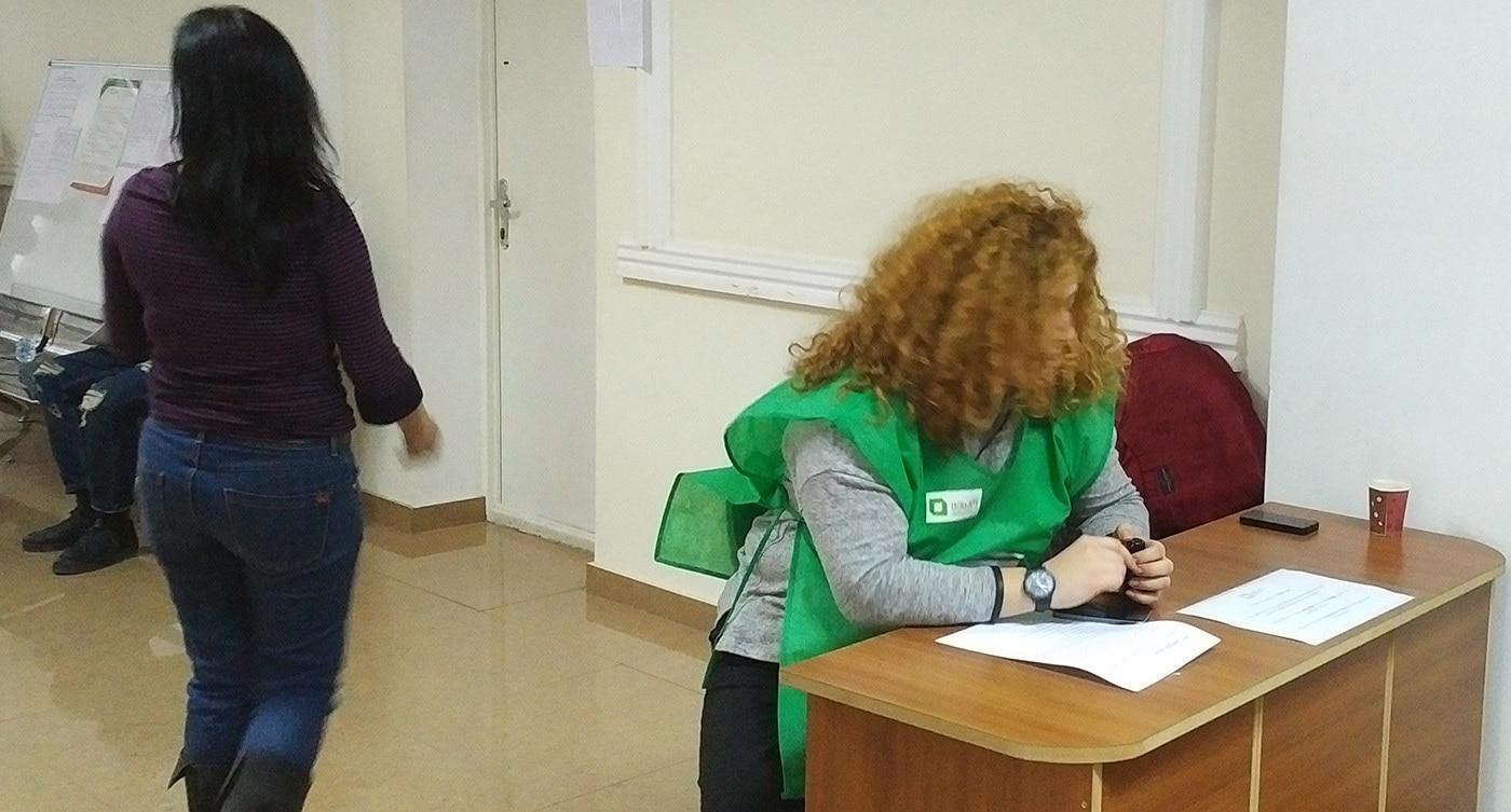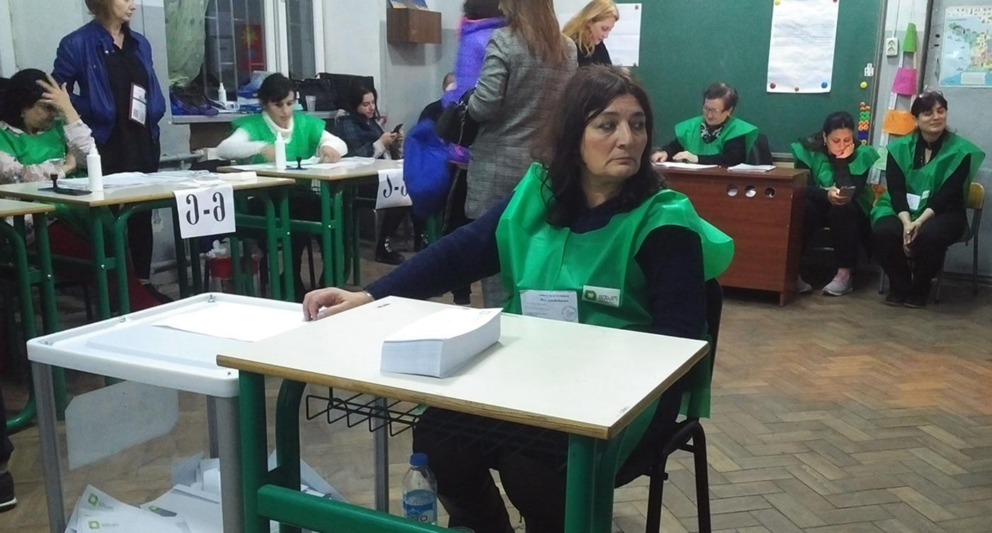 Наблюдатели и член комиссии избирательного участка №71 в Тбилиси
