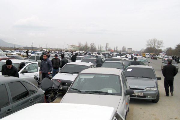 Стихийный авторынок мешает движению по трассе Махачкала-Каспийск. Фоторепортаж корреспондента "Кавказского узла" Мусы Мусаева. 27 марта-3 апреля 2011 г.