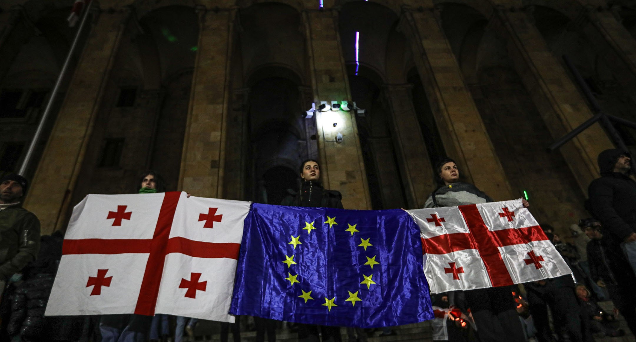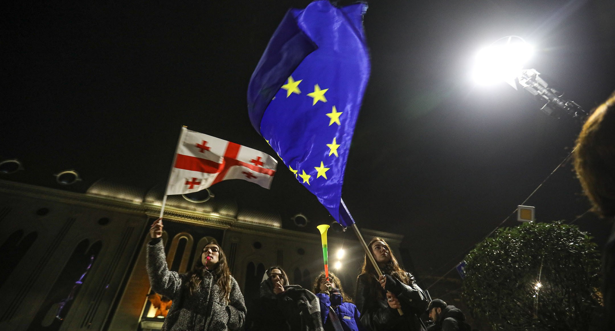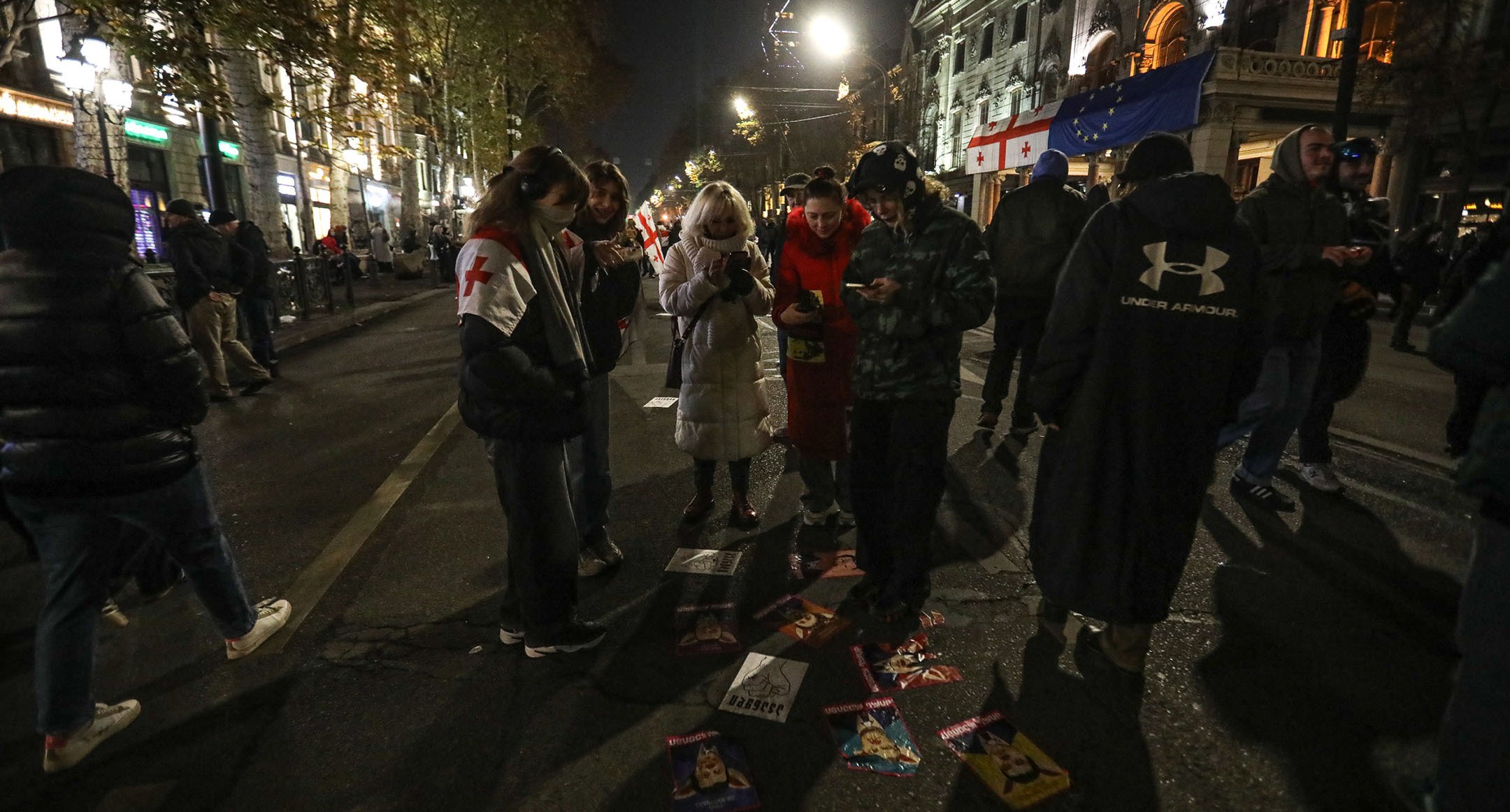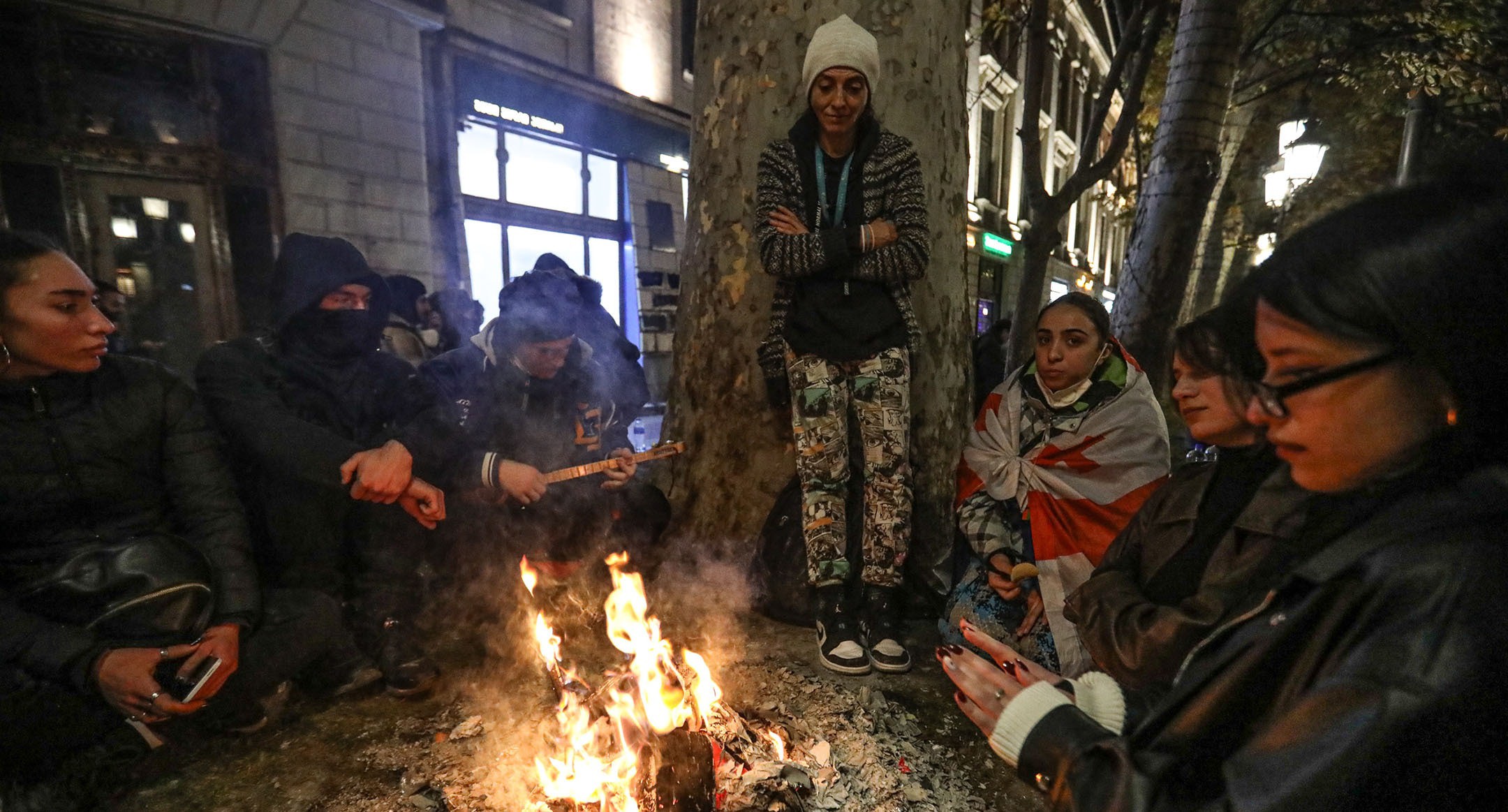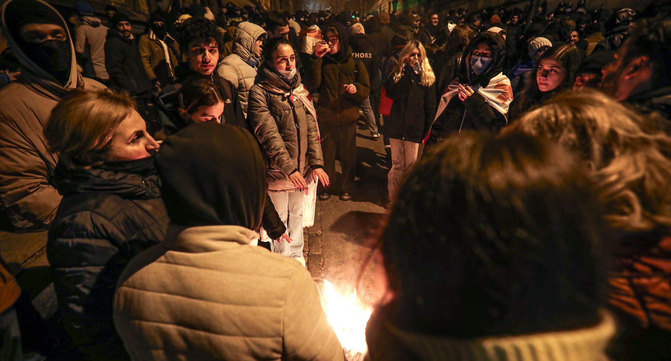 Костры и песни: ночная акция протеста в Тбилиси