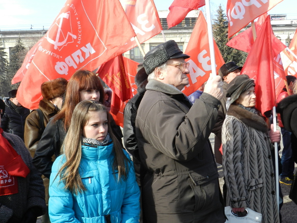 Санкционированная акция прошла на площади Ленина, на нее собралось более 100 человек.
