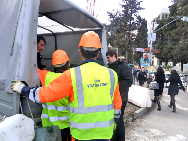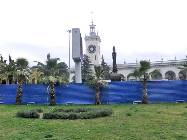 В Сочи рядом с железнодорожным вокзалом выкорчеваны пальмы. 3 марта 2013 г. Фоторепортаж корреспондента "Кавказского узла" Светланы Кравченко
