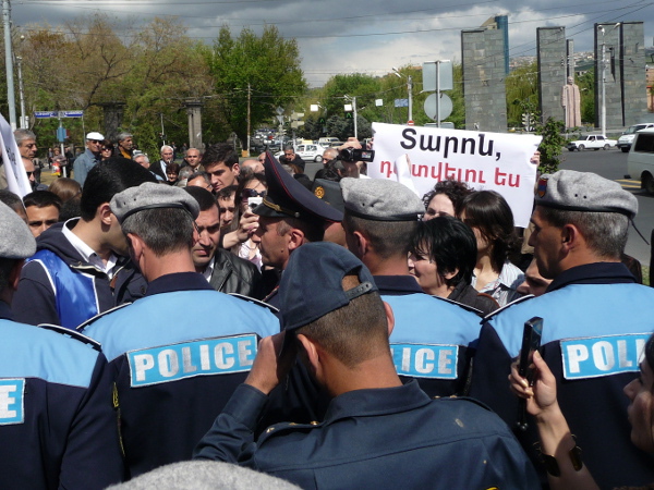 Акция протеста молодежного крыла АНК у мэрии Еревана 19 апреля 2013 г. Фото корреспондента "Кавказского узла" Армине Мартиросян.